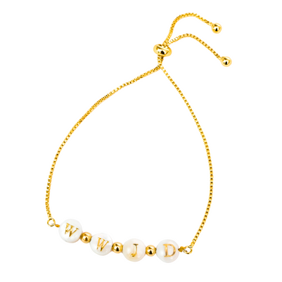 Meaningful Design: Our WWJD bracelets, featuring gold-plating and white freshwater shell beads, serves as a constant reminder to consider ' What Would Jesus Do ', adjustable for comfort.